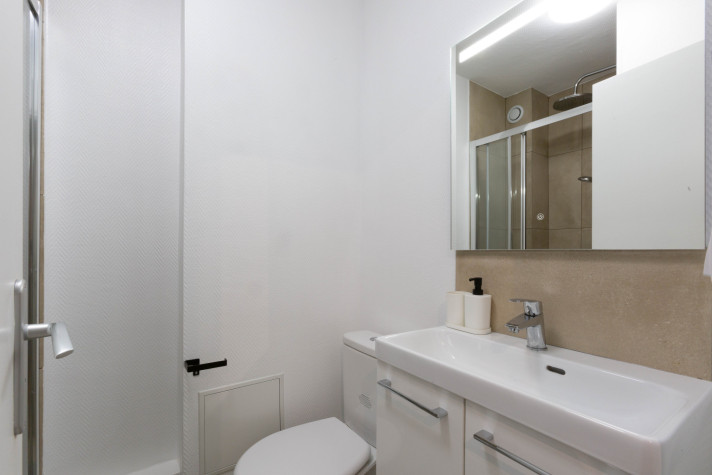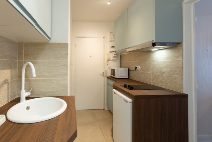 – Un coin cuisine astucieux et entièrement équipé : lave-linge séchant, réfrigérateur, hotte, micro-ondes et même la vaisselle ! Il ne vous reste qu'à poser vos valises.